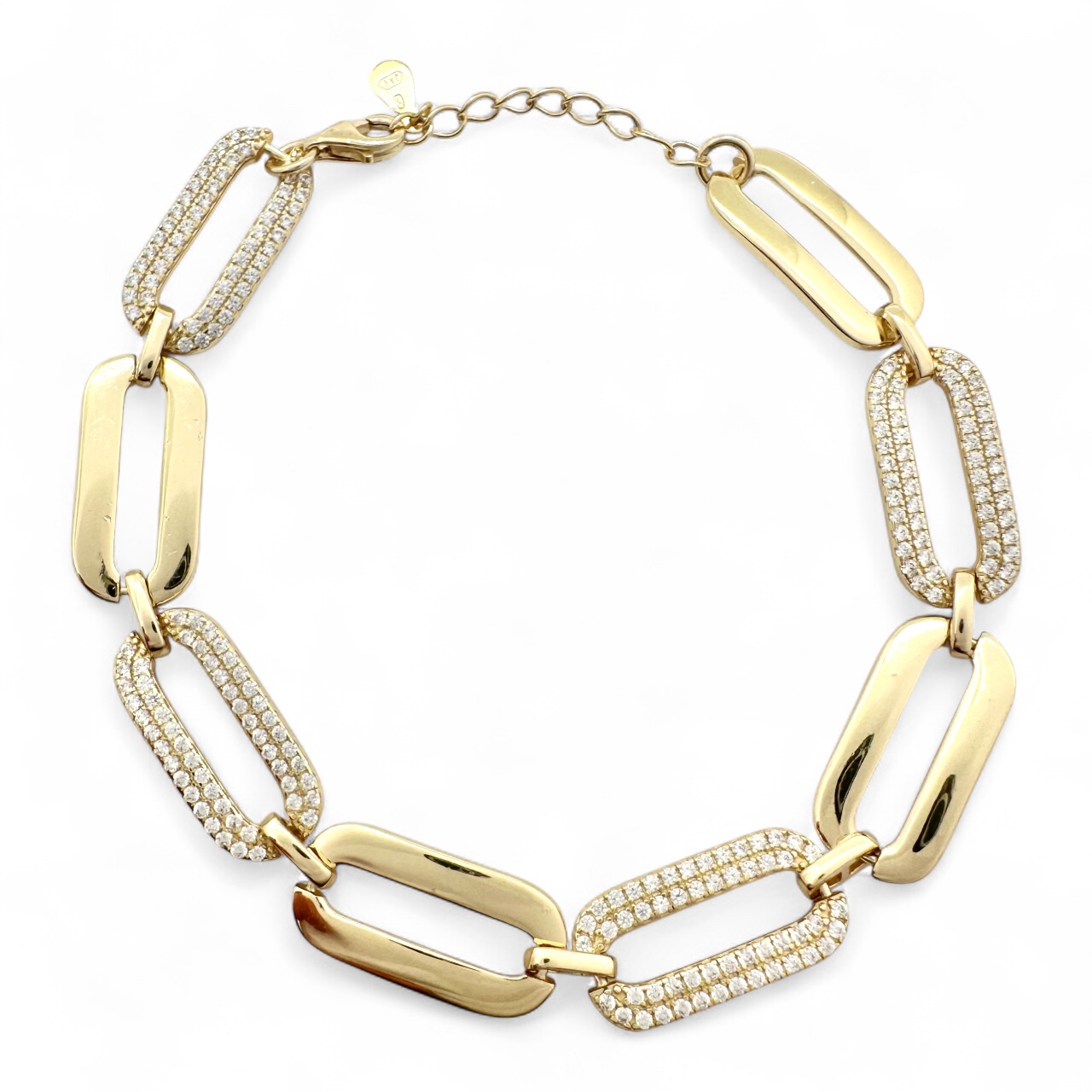 pozlacený náramek ze stříbra se zirkony působí velmi moderně a sofistikovaně.