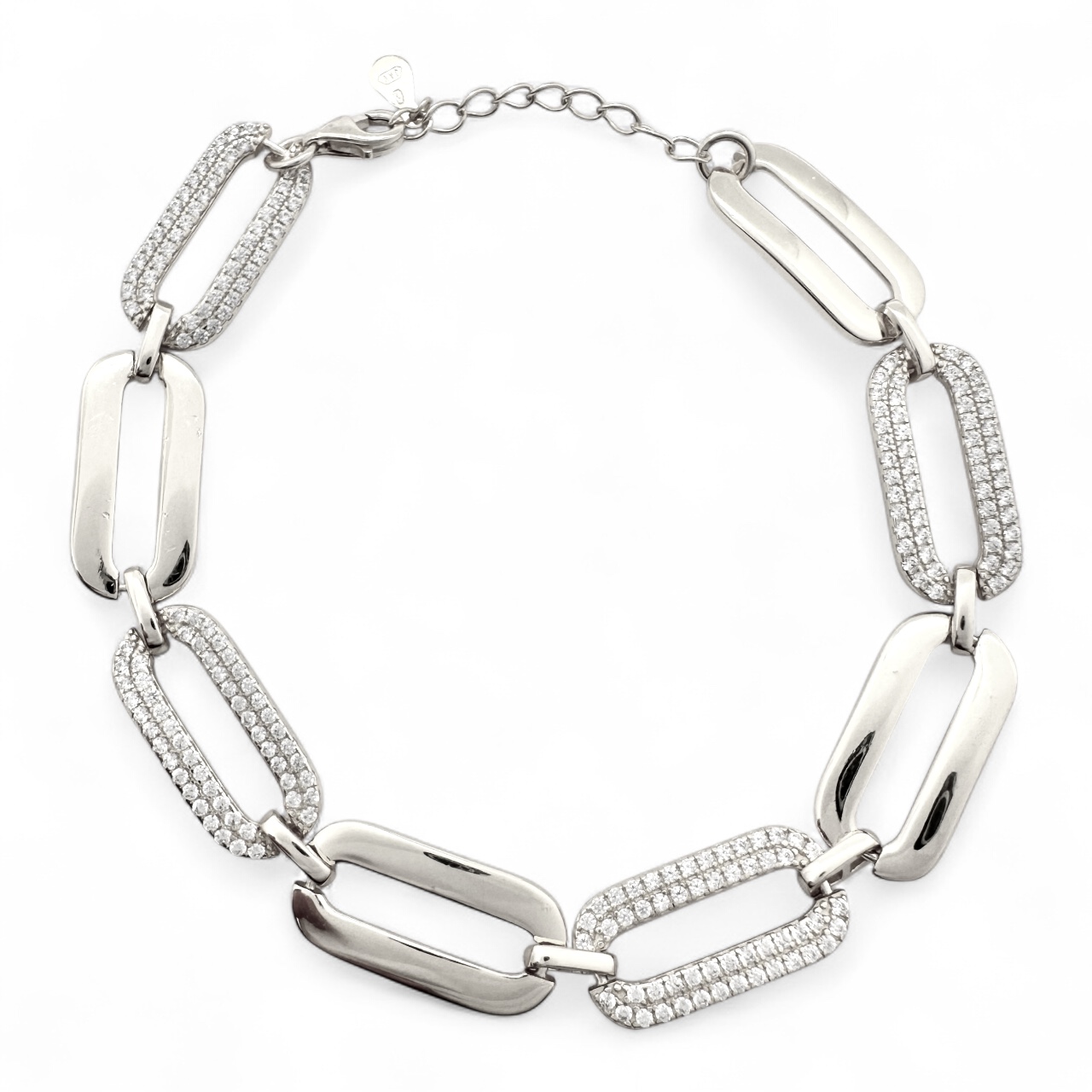 Elegantní náramek ze stříbra se zirkony působí velmi moderně a sofistikovaně.