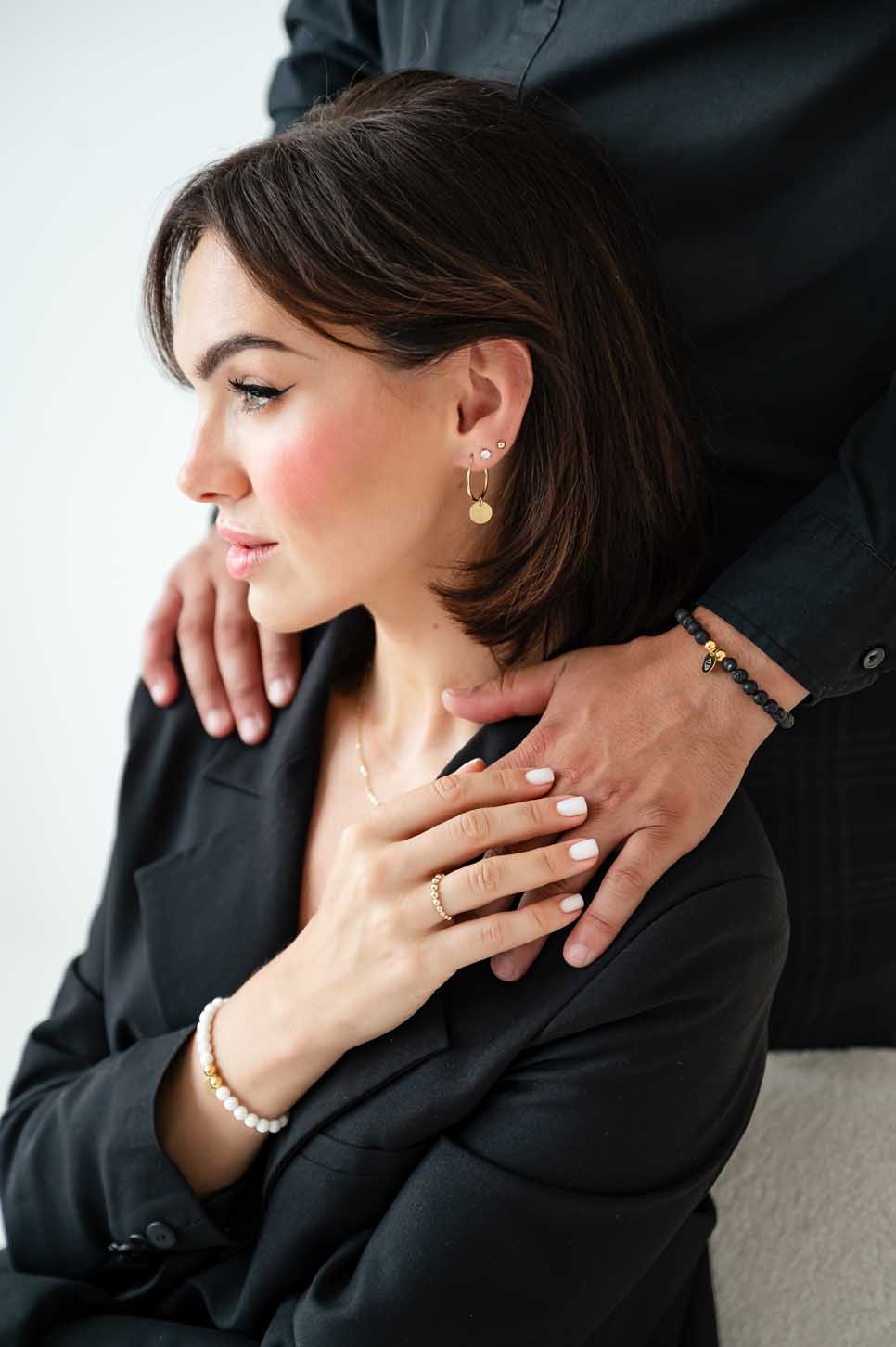 Elegantní a nadčasový náramek z lávových kamenů a stříbra. Kameny mají 6mm.