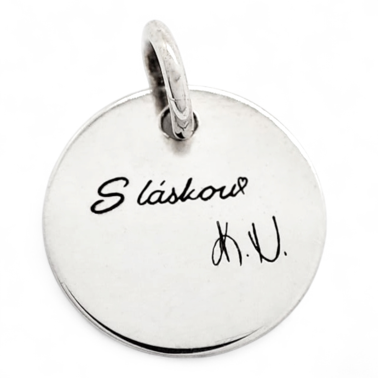 Rozměry: délka řetízku 45 cm, průměr destičky 12mm