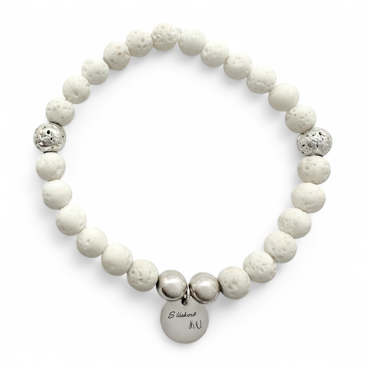 Elegantní a nadčasový náramek z lávových kamenů a stříbra. Kameny mají 6mm.