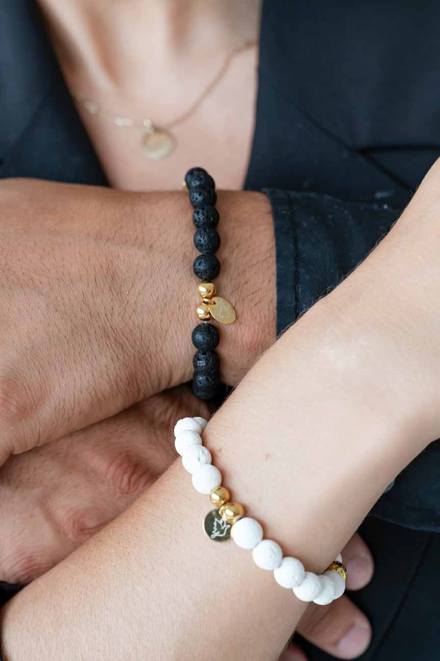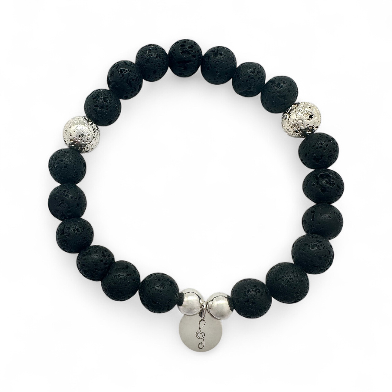 Elegantní a nadčasový náramek z lávových kamenů a stříbra. Kameny mají 8mm.