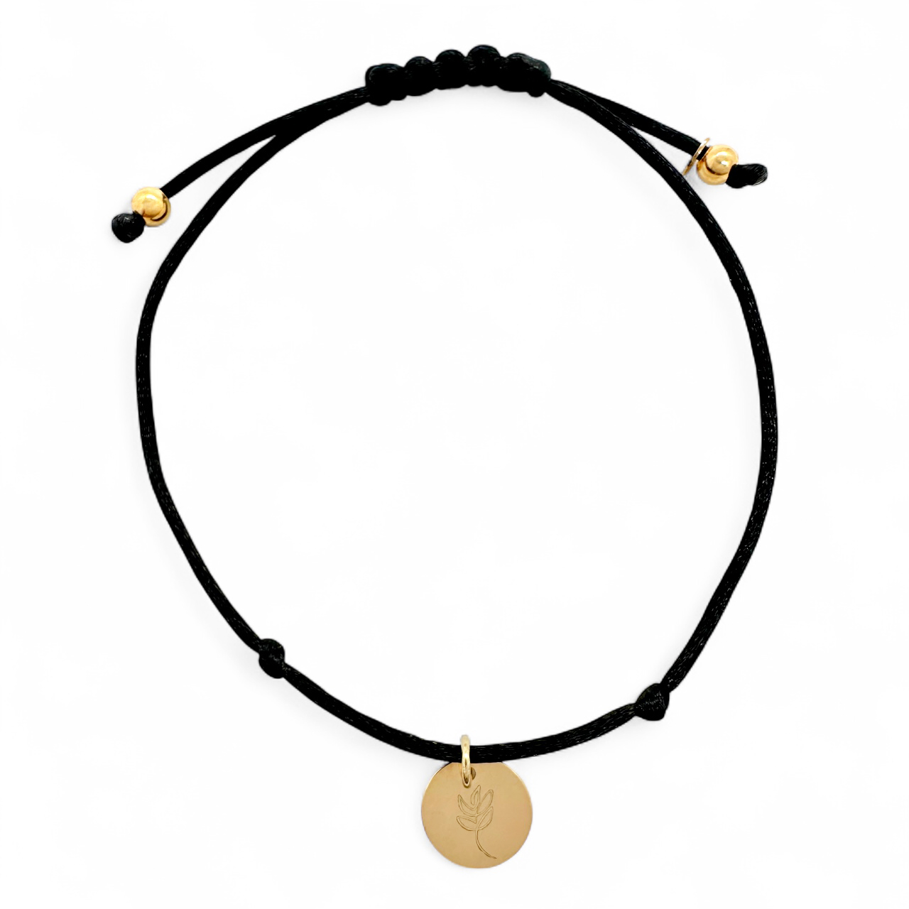 Tento trendy šambalový náramek se saténovou šňůrkou je pohodlný a dobře nositelný, díky posuvnému pletenému uzlu. Dominantním prvkem náramku je pozlacený medailonek z pozlaceného stříbra, který dodává šperku elegantní nádech luxusu. Minimalistický design skvěle doplní každodenní i slavnostnější outfit.