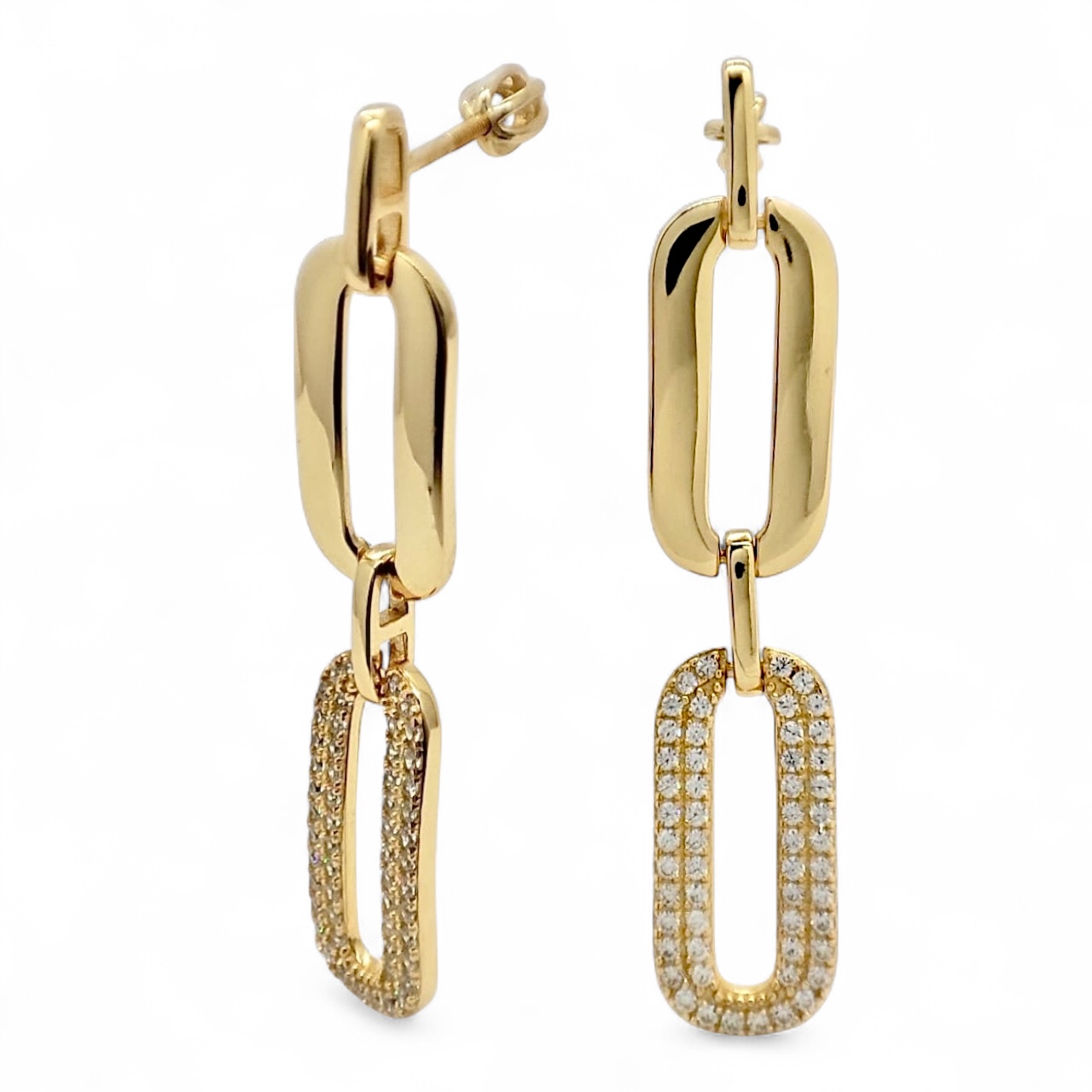 design zaoblených článků pozlacených visacích náušnic ze stříbra, v nadčasové