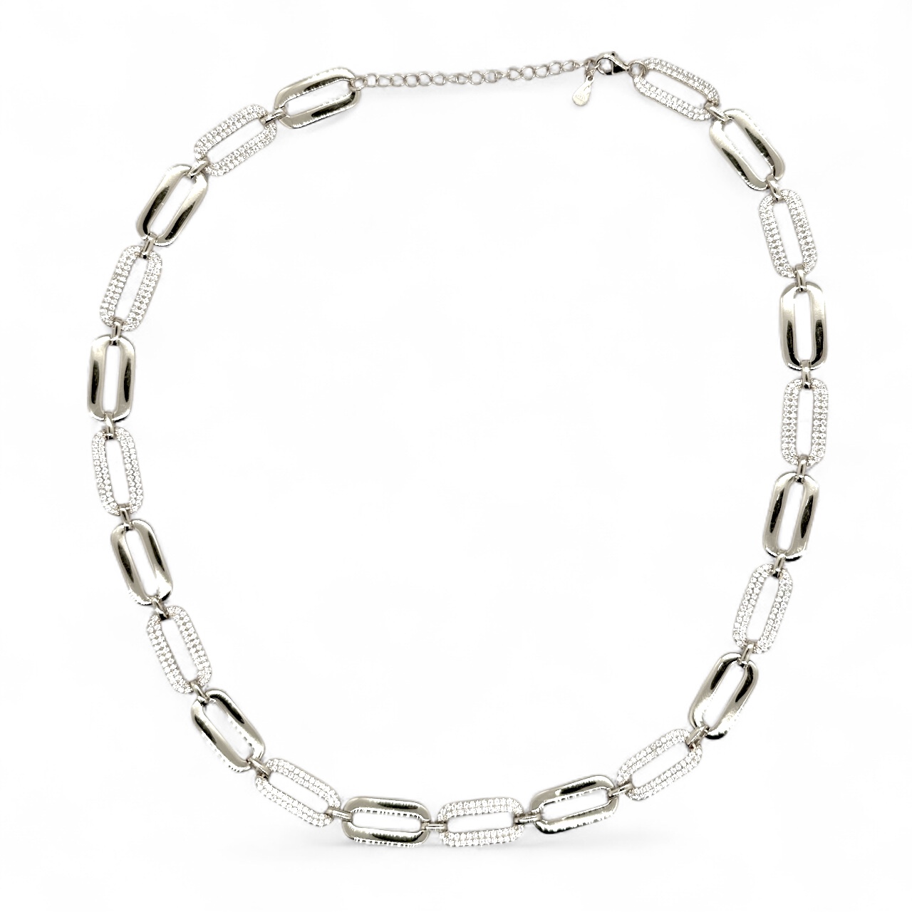 náhrdelník vyrobený ze stříbra kombinuje elegantní lesk kovu s jemným třpytem