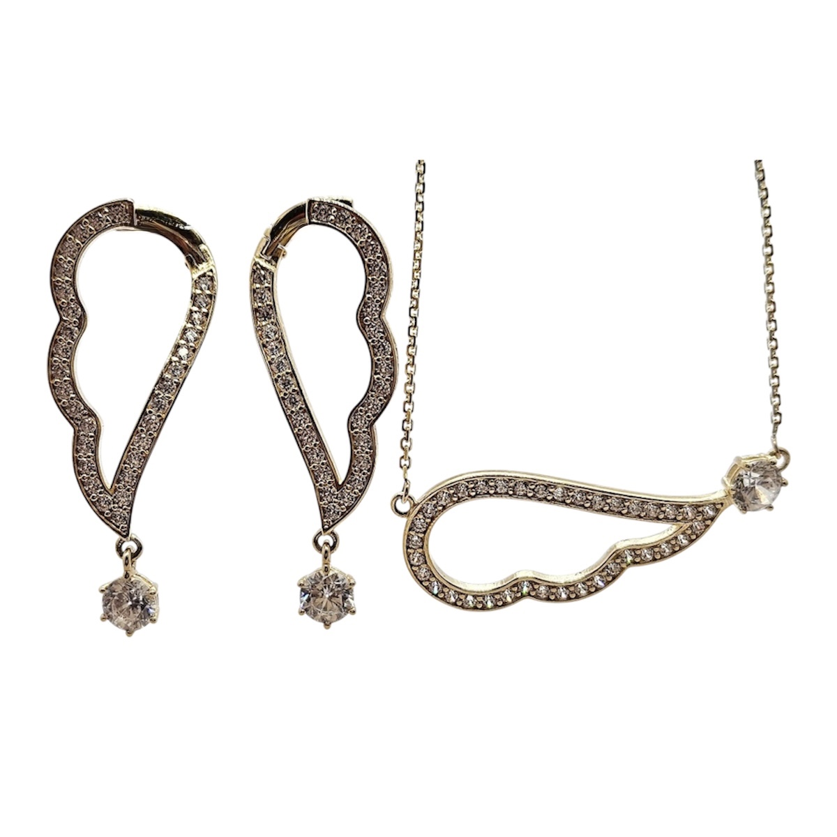 Zlatý módní řetízek ze žlutého zlata osazený nádhernými zářivými zirkony a dokonale sladěné náušnice. Šperk, který může být i vaším dokonalým dárkem.