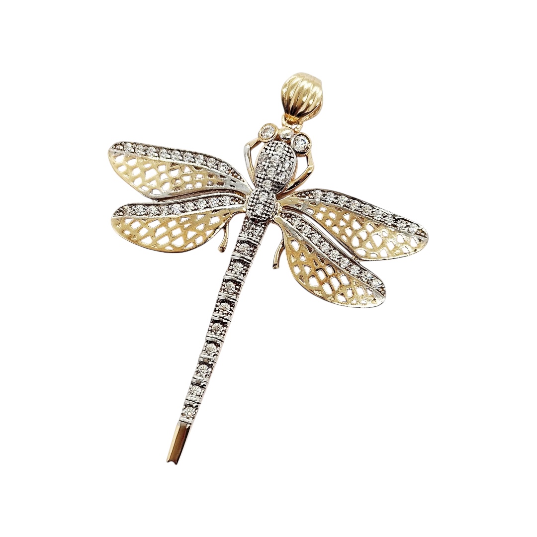 Zlatý přívěsek vážka vyrobena ze žluto-bílého zlata se zirkony . Okouzlující a nádherně zpracovaný šperk.