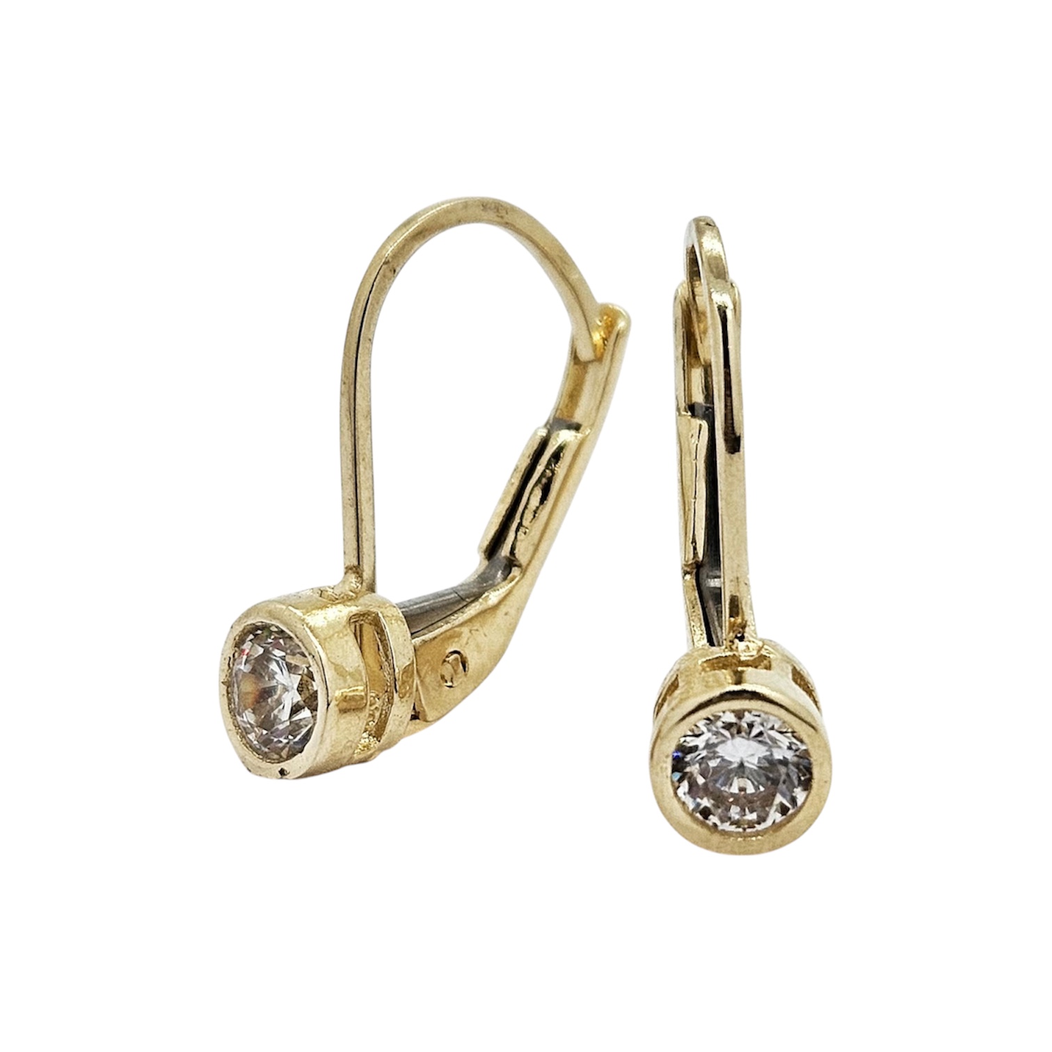 zlaté náušnice s čirým kamenem představují nadčasovou klasiku, která nikdy