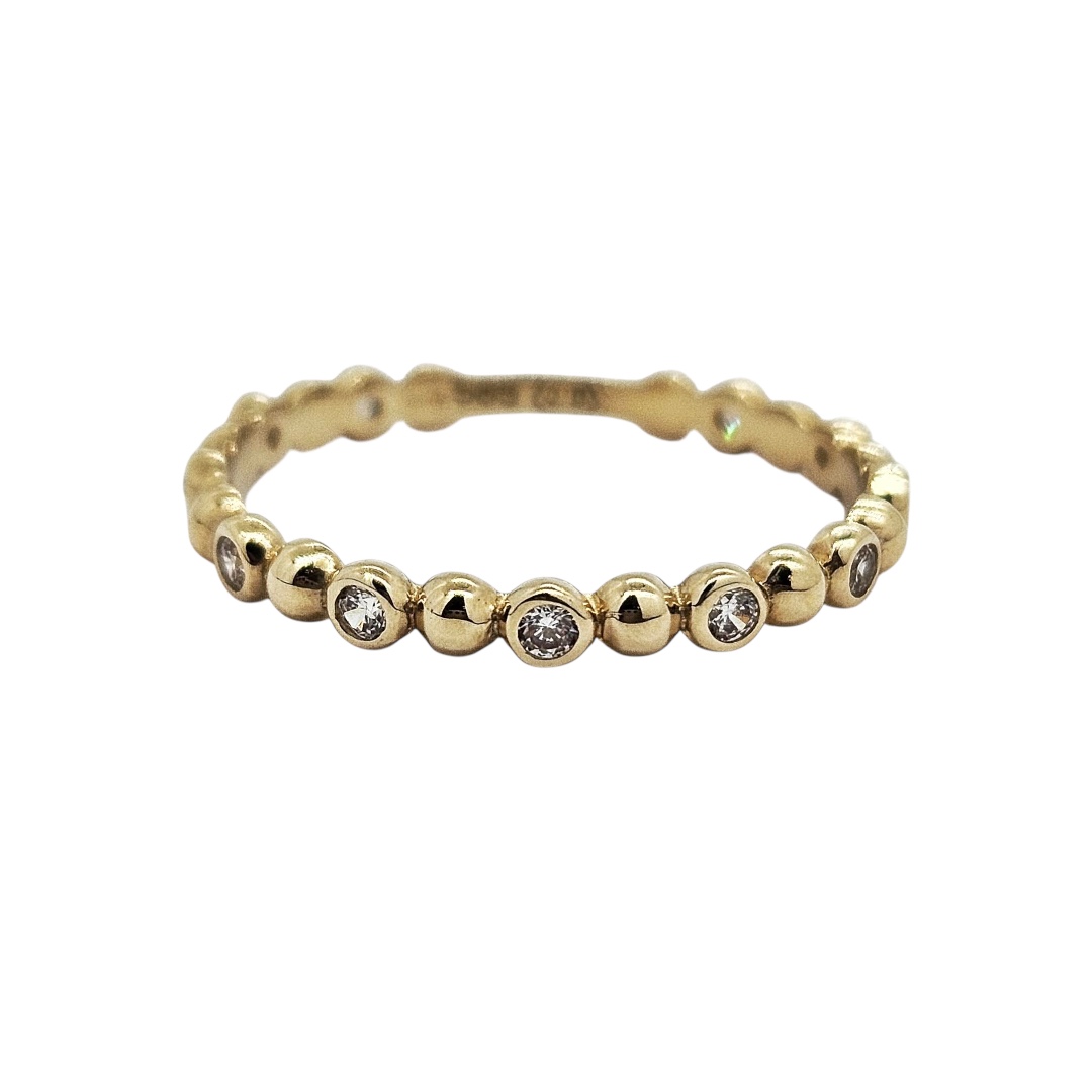 Zlatý prsten ve žlutém zlatě se zářivými zirkony. Nádherný jemná dámský šperk.