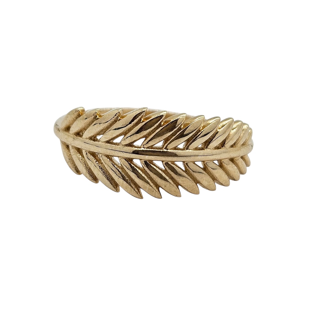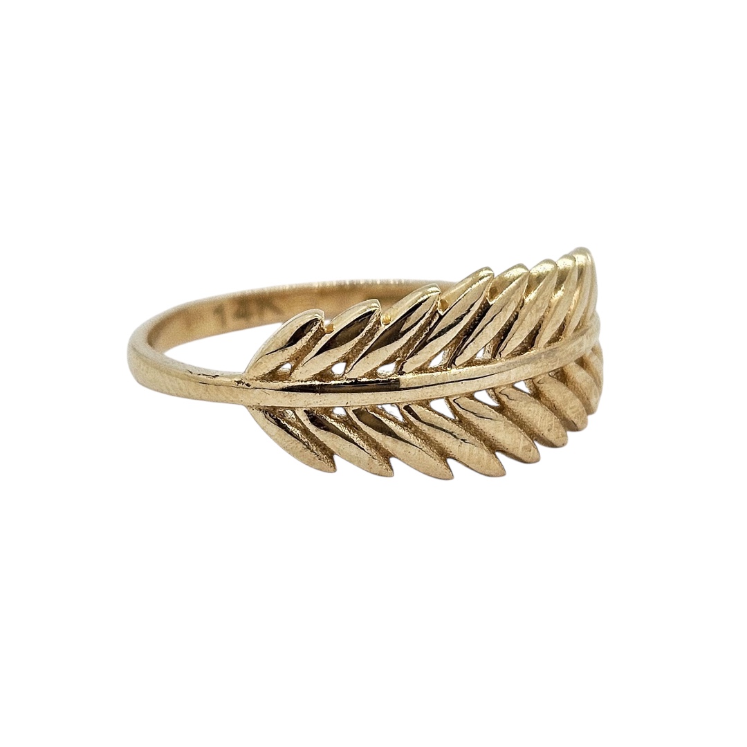 Zlatý prsten ve žlutém zlatě v motivu listu. Nádherný elegantní dámský šperk.