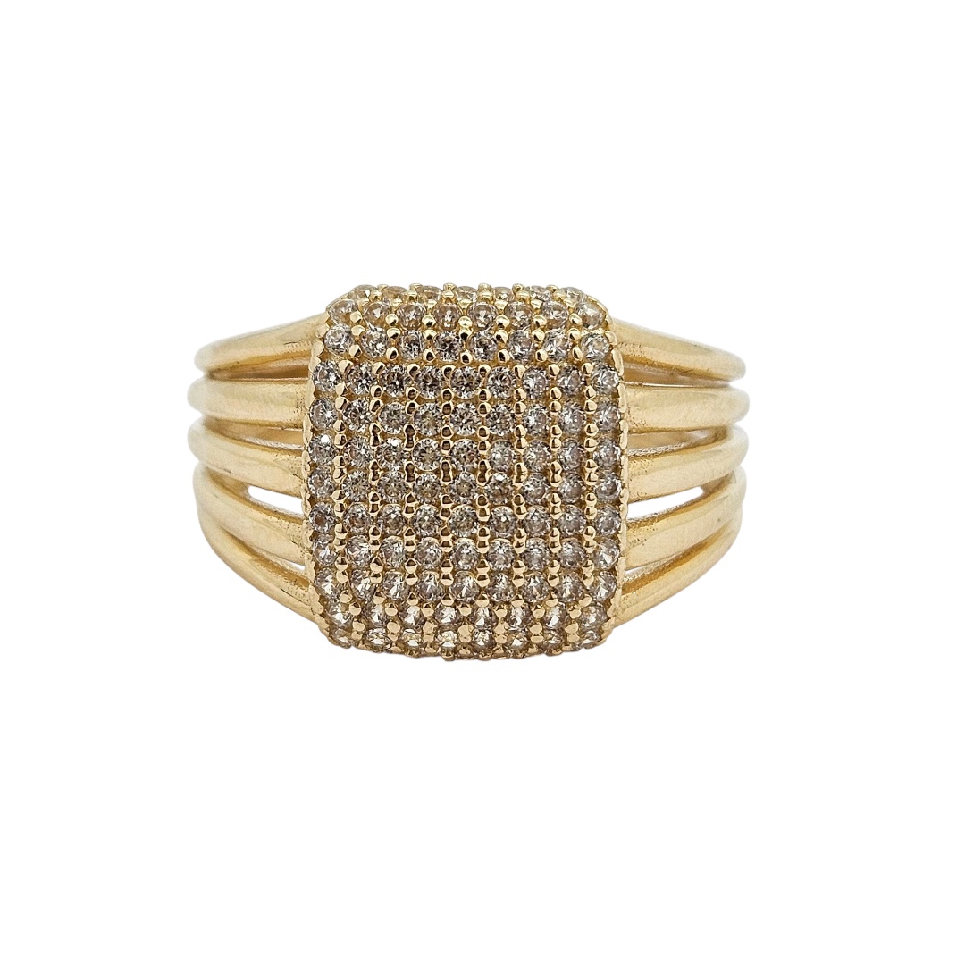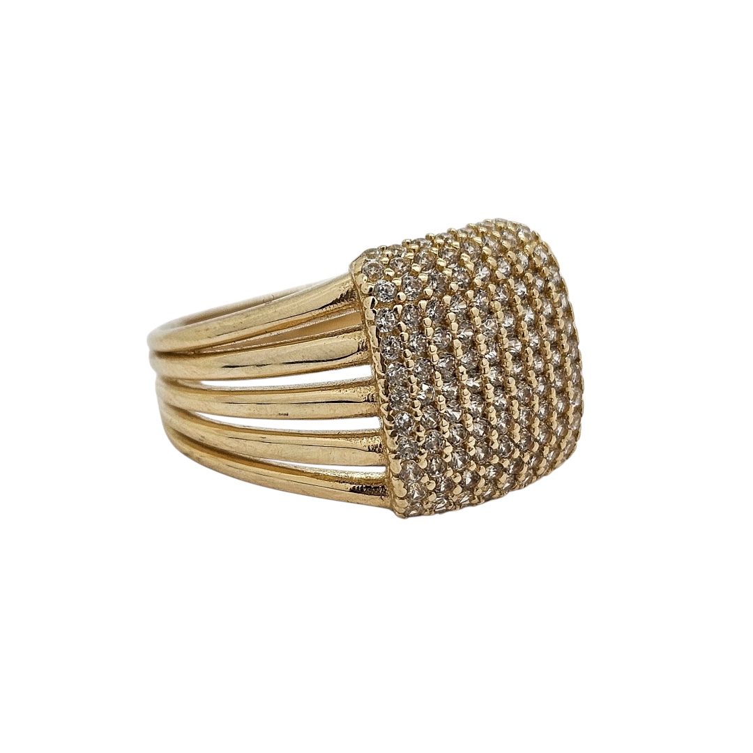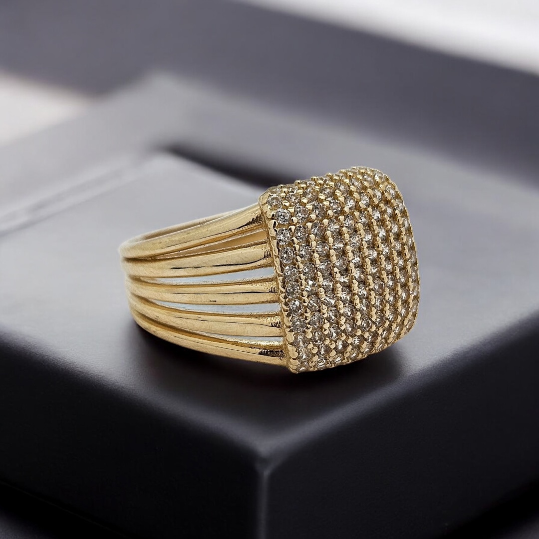 Zlatý luxusní prsten se zirkony. Nádherný nepřehlédnutelný dámský prsten - šperk.