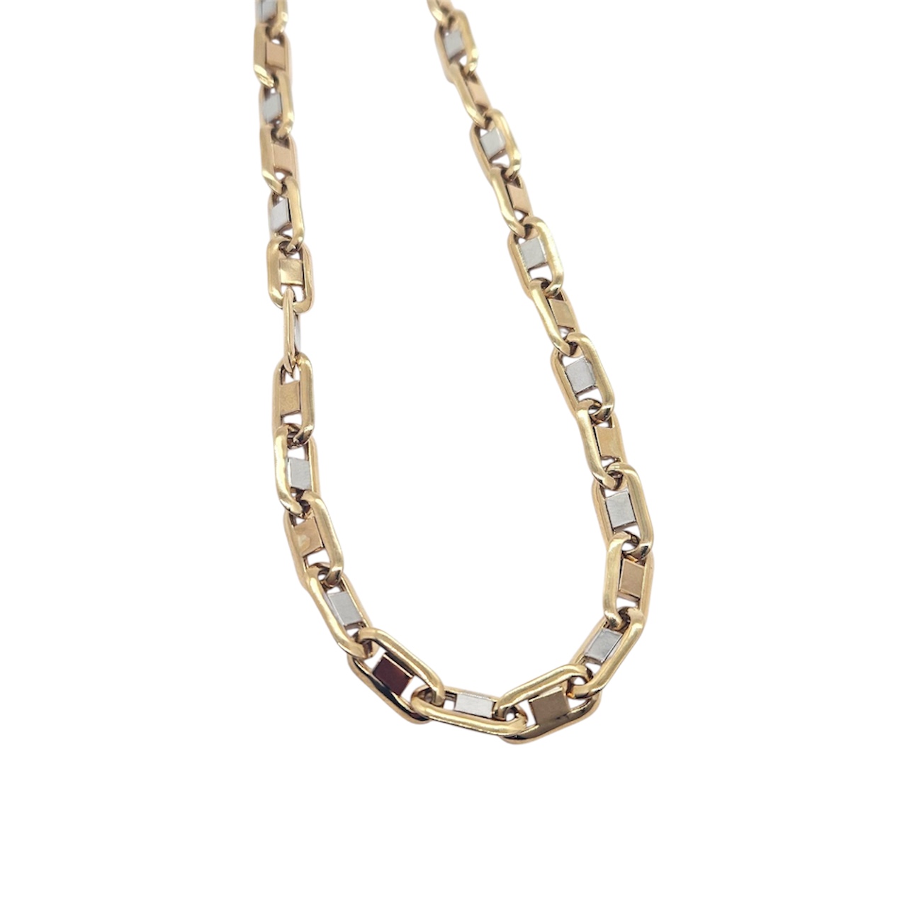 Zlatý masivní a módní řetízek ve žlutobílém zlatě.