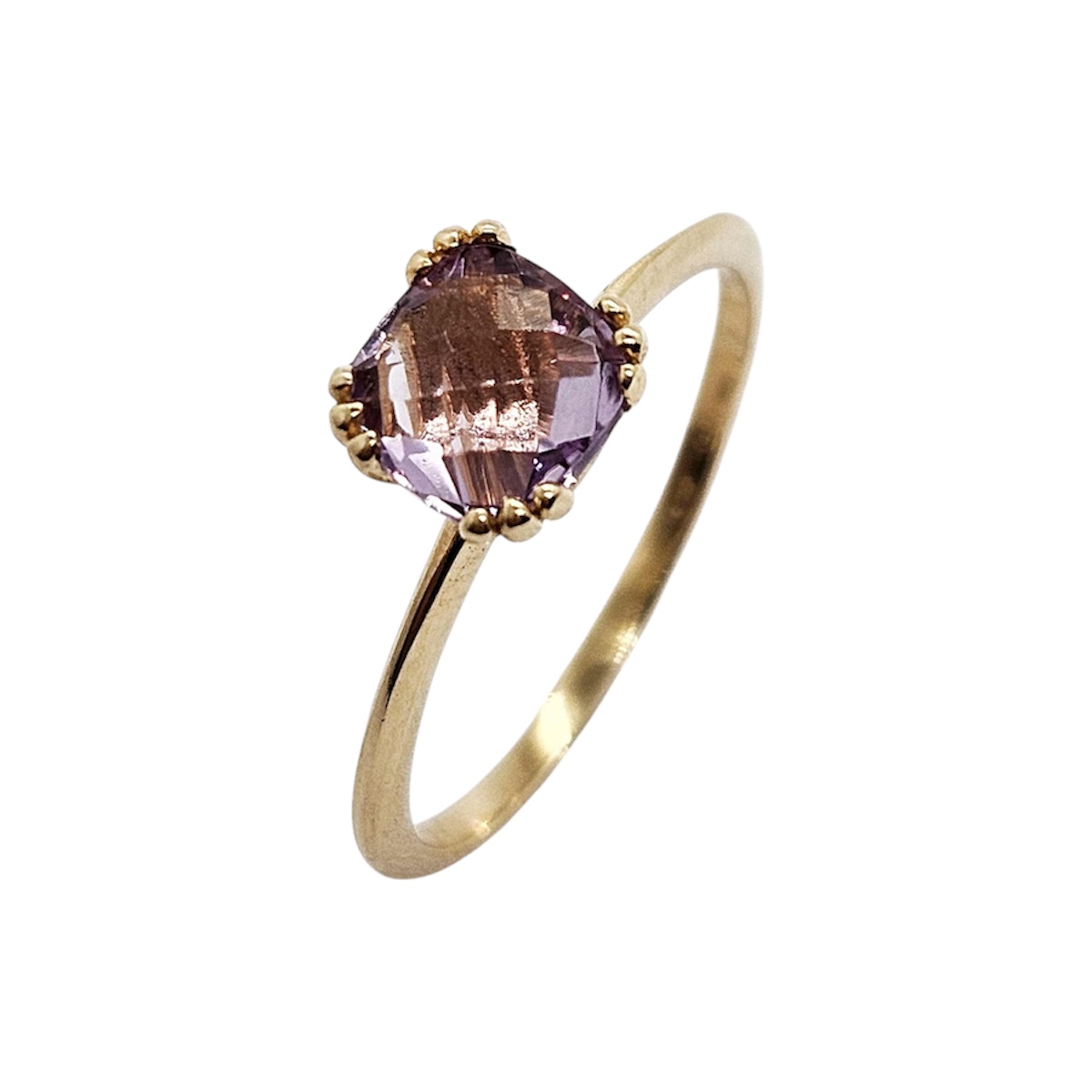 Zlatý prsten osazen přírodním ametystem, ze žlutého zlata se může stát dokonalým dárkem nejen pod vánoční stromeček.