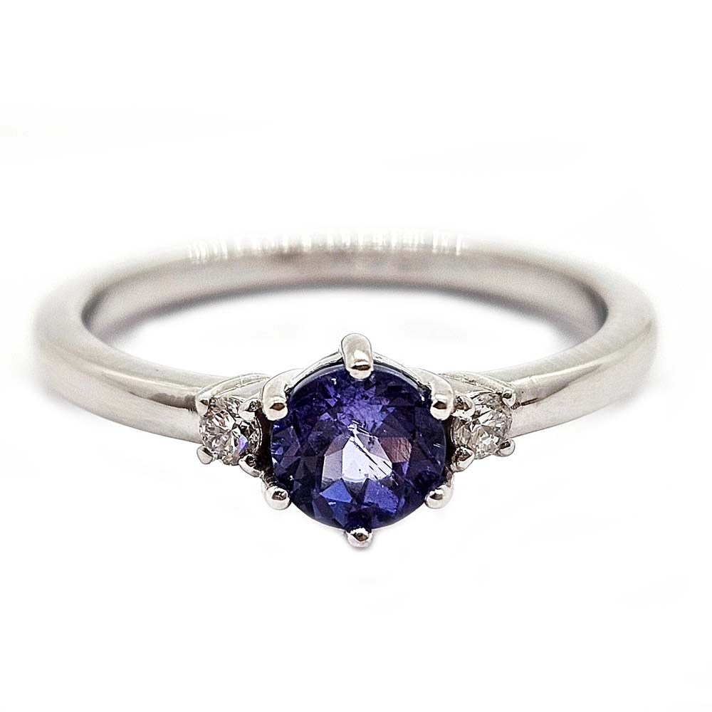 Kámen: tanzanit- kruhový brus průměr 4,8 mm, 2x briliant 2/ 0,016 ct VS2/F