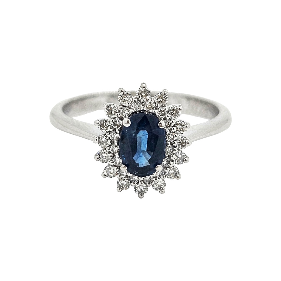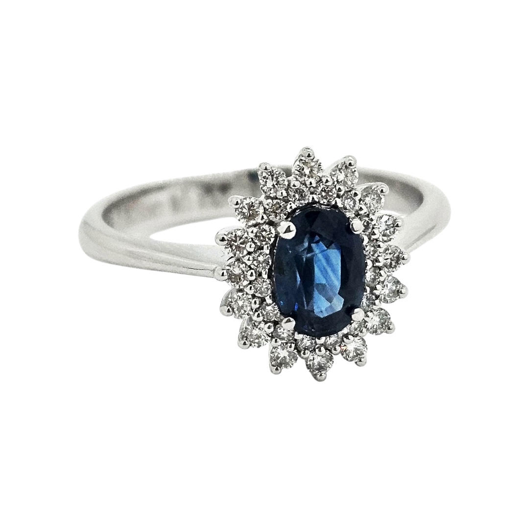 Kámen: 32 briliantů 32/0,22 ct VS1/F 1x přírodní safír 6x4 mm