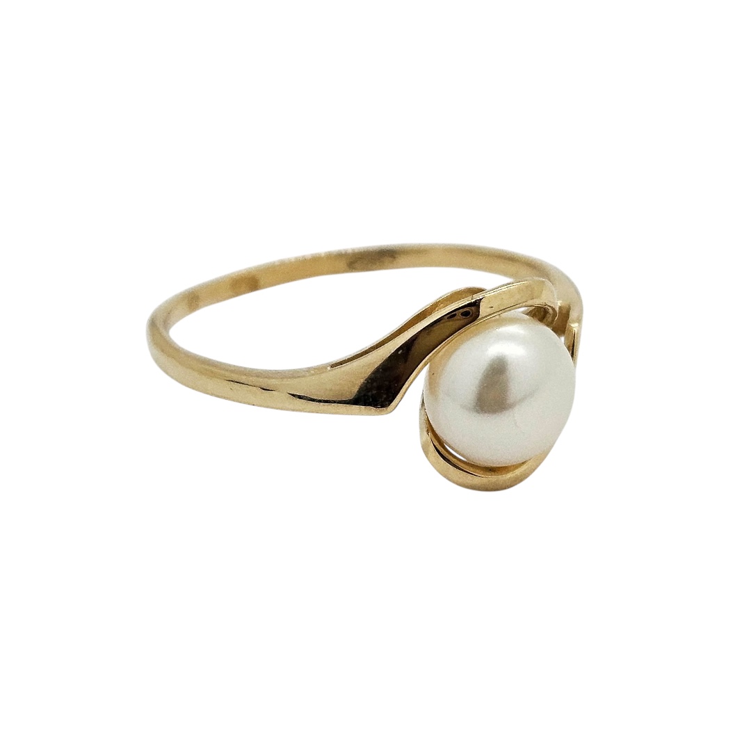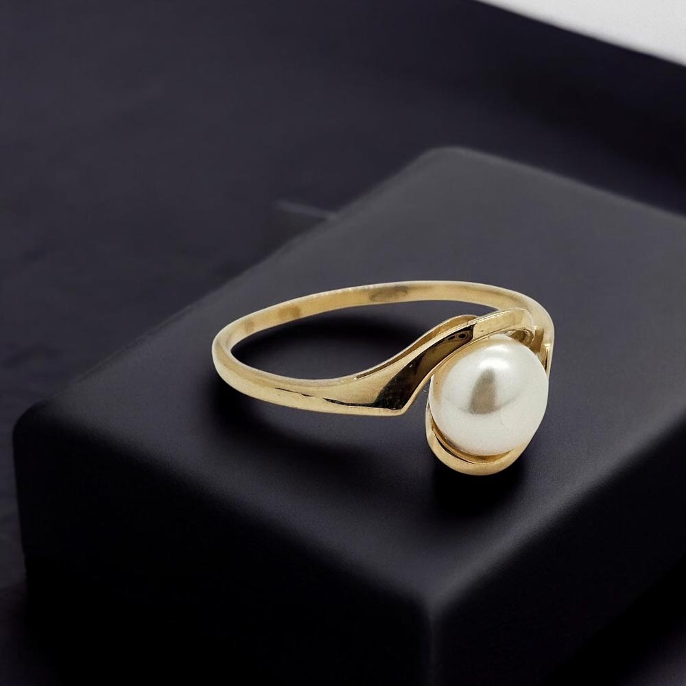 Zlatý prsten s kutivovanou perlou ve žlutém zlatě. Nádherný elegantní dámský šperk.