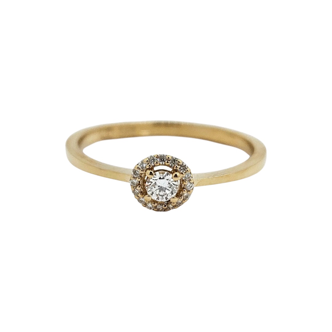 Zlatý prsten se 17 brilianty, který je nejen dokonalým šperkem, ale také nádherným a romantickým zásnubním prstenem