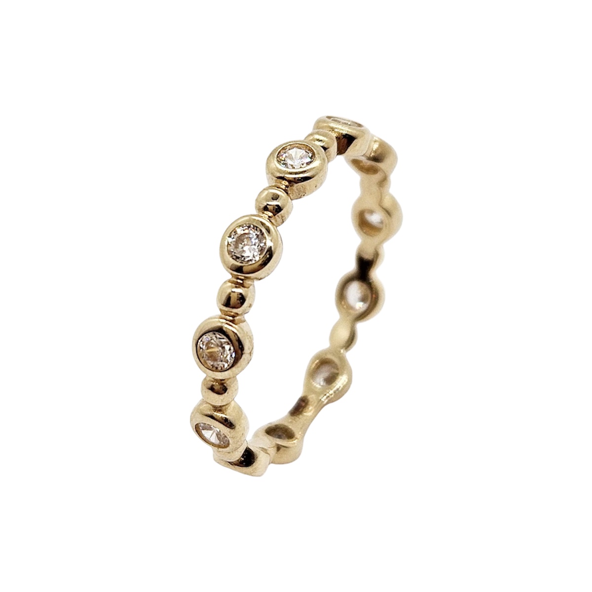 Zlatý prsten ve žlutém zlatě se zirkony - jemný minimalistický prsten zdobený po obvodu zirkony v hladké obrubě efektní a praktický na nošení.