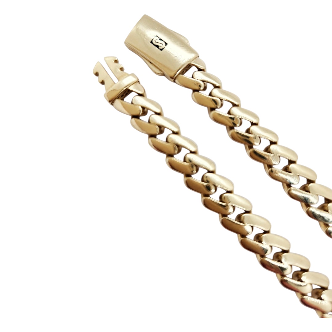 Zlatý řetěz Unisex ve žlutém zlatě v šířce 7mm a délce 55cm. Jedná se o Unisex vzor pancr- kubánský typ. Řetěz, který nepřehlédnete.