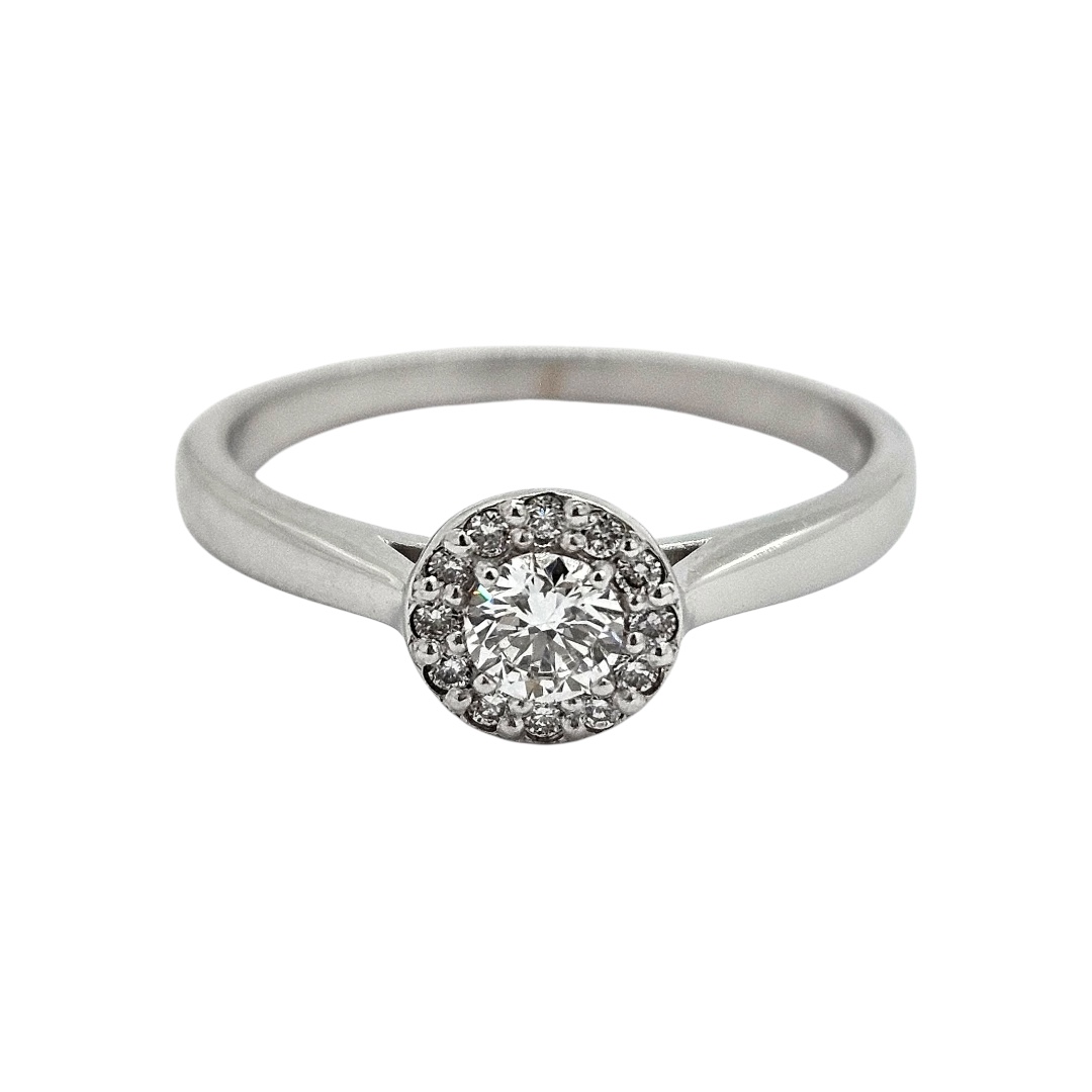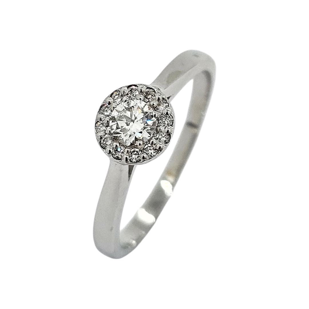 Zlatý prsten z bílého zlata se 13 zářivými brilianty. Nádherný romantický zásnubní prsten.